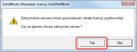 Na zakładce Administracja serwera wybierz Zatrzymaj, potwierdź czynność przyciskiem Tak w kolejnym komunikacie.