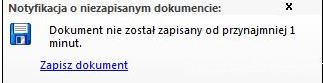 Komunikat Notyfikacji o nie zapisanym dokumencie, pojawia się w prawym dolnym narożniku obszaru graficznego, jeżeli aktywny dokument nie został zapisany w określonym odstępie czasu/ilości zmian.