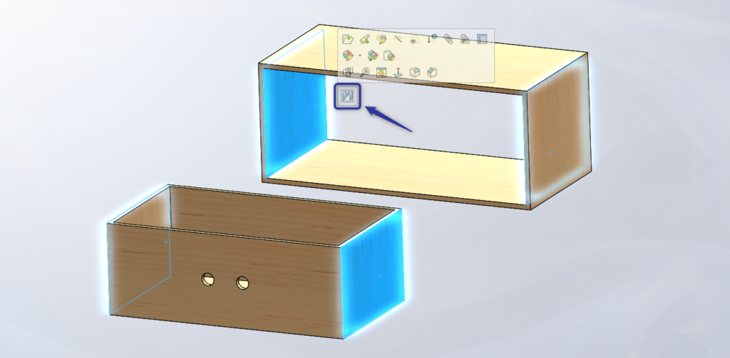 Czy kiedykolwiek zauważyłeś/aś, że podręczny pasek narzędzi SOLIDWORKS pojawia się tuż obok wskaźnika myszy, gdy tylko wstępnie zaznaczysz elementy, trzymając wciśnięty klawisz Ctrl? Poniżej znajduje się właśnie podręczny pasek narzędzi dot. wiązań. Jeśli po wybraniu elementów, poruszymy jakkolwiek kursorem, pasek zniknie.