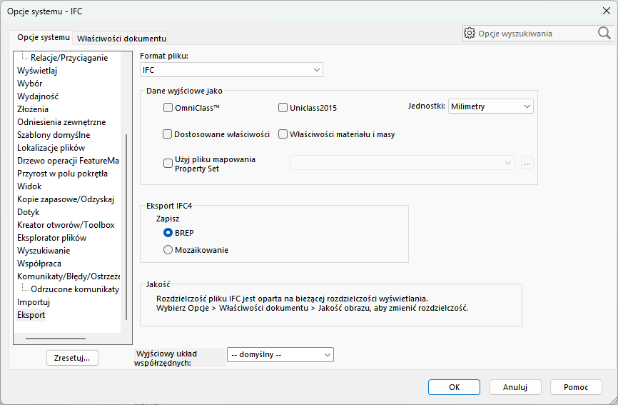 - Jednostki – określa jednostki dla eksportowanego modelu.