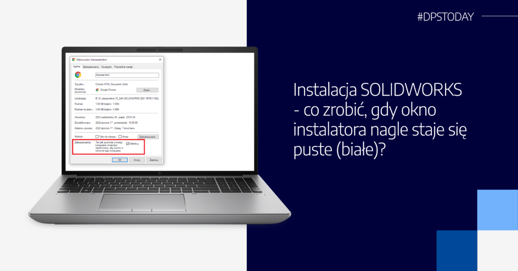 Część użytkowników natrafia na problem „białego okna” podczas instalacji oprogramowania SOLIDWORKS. Warto zaznaczyć, że błąd nie jest powiązany bezpośrednio z oprogramowaniem SOLIDWORKS.„Białe okno” związane jest z zabezpieczeniami systemu WINDOWS, które blokują pliki html podczas rozpakowywania archiwum ZIP.