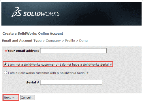 WAŻNE! Wpisujemy swój adres e-mail oraz wybieramy opcję „I am not a SolidWorks Customer..” i przechodzimy dalej.
