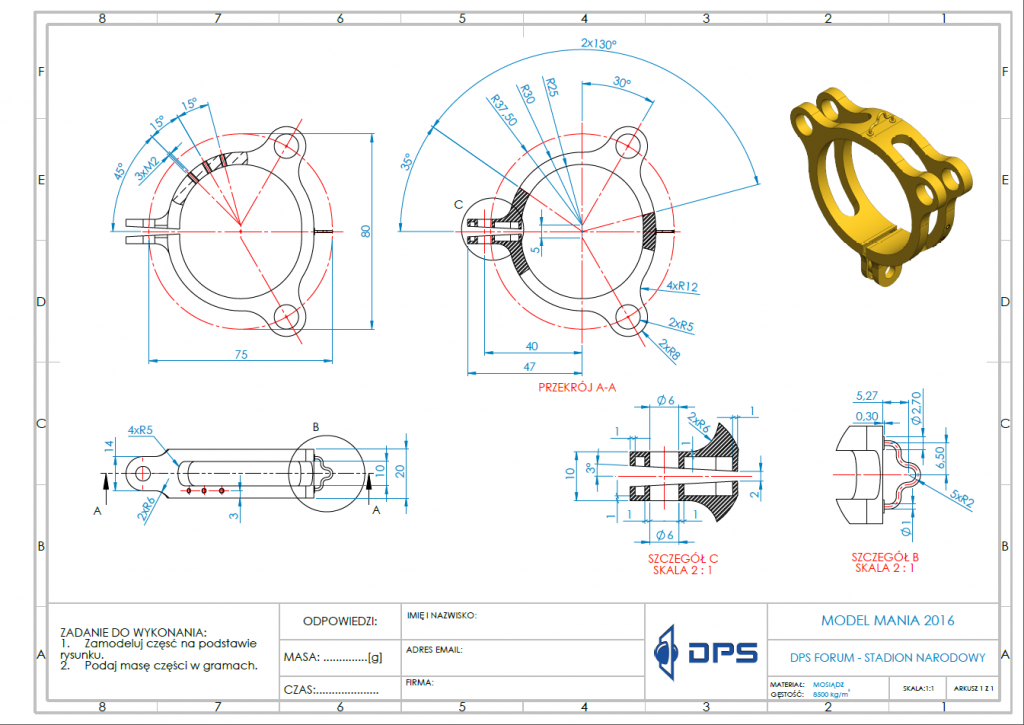 Wszystkim uczestnikom konkursu dziękuję za udział, a zwycięzcom gratuluję. Dla wszystkich którzy czują niedosyt dołączam plik z rysunkiem konkursowym. Prawidłowa odpowiedź to 130,77 g.
