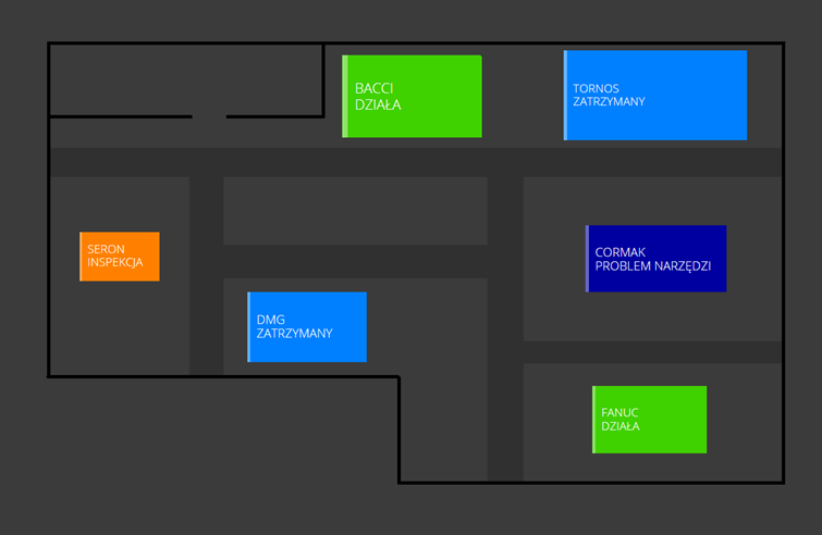 - Dostosowanie do przestrzeni zakładu: Możliwość odwzorowania układu maszyn w sposób odpowiadający ich rzeczywistej lokalizacji poprawia orientację w systemie.