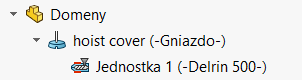 Kolejną rozwijaną zakładką są „Domeny”. Przez to, że model CAD składa się z pojedynczej części, to zaprojektowanemu elementowi została przypisana definicja gniazda. Dlatego też nie wprowadzono żadnych zmian (Patrz Rysunek 10).