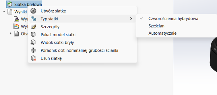 Ponadto możliwe jest przeprowadzenie analizy na siatce bryłowej bądź skorupowej. Pierwsza z nich jest dokładniejsza, ale też znacznie wolniejsza. Siatkę bryłową należy zawsze wybrać przy wykonywaniu ostatecznej symulacji, żeby mieć pewność, że otrzymane wyniki są prawidłowe. Siatka skorupowa dostarcza znacznie szybciej wyniki, ale są one mniej dokładne. Wynika to z faktu, że program nie uwzględnia grubości ścianek, czego skutkiem jest posiadanie przepływu jednorodnego, a nie w pełni rozwiniętego.