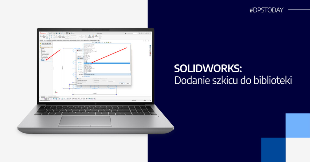 Oczywiście trzeba zapisać nasz projekt. Wychodzimy ze szkicu i klikany Zapisz. Ten plik będzie naszą bazę, w razie gdybyśmy chcieli dokonać jakiś zmian lub wykorzystać go ponownie. Żeby zrobić plik biblioteczny trzeba w drzewie historii kliknąć LPM na szkic, a następnie wybrać opcję Zapisz jako. Jako format pliku trzeba wybrać *.sldlfp (SOLIDWORKS Library Feature Part). Po zmianie rozszerzenia program powinien nas odesłać do folderu design library. Możemy tutaj utworzyć nowy folder, albo zapisać w innej lokalizacji i później ją dodać do biblioteki projektu (ta opcja jest bezpieczniejsza dla naszych projektów).