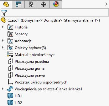 UWAGA 2. Lidy utworzone w złożeniu, nie są w żaden sposób powiązane z modelem. Dobrą praktyką jest unieruchomienie tych elementów, żeby w trakcie pracy nie przemieściły się.