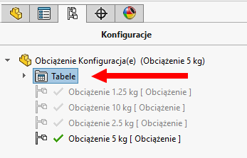 W konfiguracjach złożeń możemy wywoływać i zmieniać konfiguracje podzłożeń i komponentów.