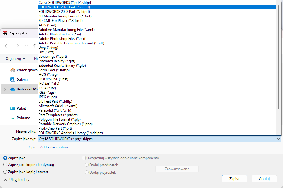 Nie wszyscy jeszcze wiedzą, że producent oprogramowania w wersji 2024 wprowadził możliwość zapisu pliku do starszej wersji. Oczywiście i tutaj będziemy mieli pewne ograniczenia, ale zyskujemy też pewne zalety tego rozwiązania. Jak to działa i na co należy zwrócić uwagę? Przede wszystkim to od wersji na rok 2024 dostajemy możliwość zapisu do starszej wersji SOLIDWORKS, ale maksymalnie 2 wersje wstecz. Czyli możemy zapisać pliki do wersji 2023 i 2022. Ale SOLIDWORKS 2025 będzie miał możliwość zapisu do wersji 2024 i 2023, itd. Jeżeli chodzi o ograniczenia takiej funkcjonalności, to naturalnym jest, że nie możemy zapisać w takim pliku funkcjonalności, której nie ma w starszej wersji. Ale o to nie musimy się przesadnie martwić, gdyż jeżeli taka funkcjonalność występuje w naszym projekcie, to oprogramowanie poinformuje nas o potrzebie usunięcia operacji, która wykorzystuje opcje, których nie ma w starszych wersjach. Dopiero wtedy będziemy mogli zapisać nasz projekt w wybranej wersji rocznikowej. Z drugiej strony zyskujemy bezstresową pracę na najnowszej wersji oprogramowania i współpracę z kontrahentami, którzy nadal wykorzystują starszą wersję SOLIDWORKS.