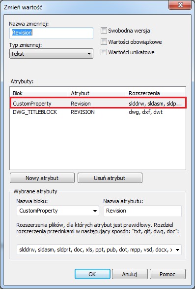 Zmienna ta musi istnieć na kartach danych plików, które będą miały synchronizowaną poprawkę. Poniżej karta zmiennej rewizji z odpowiednimi ustawieniami.