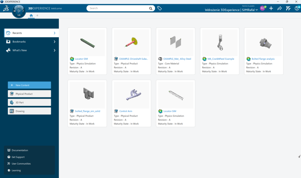Nowa strona powitalna w 3DEXPERIENCE 2026 to prosty, a zarazem bardzo praktyczny dodatek. Zamiast pustego ekranu użytkownik od razu widzi: