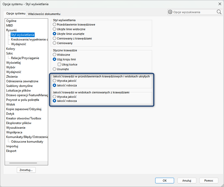 2.1. Jakość krawędzi w przedstawieniach krawędziowych i widokach ukrytych – jakość robocza