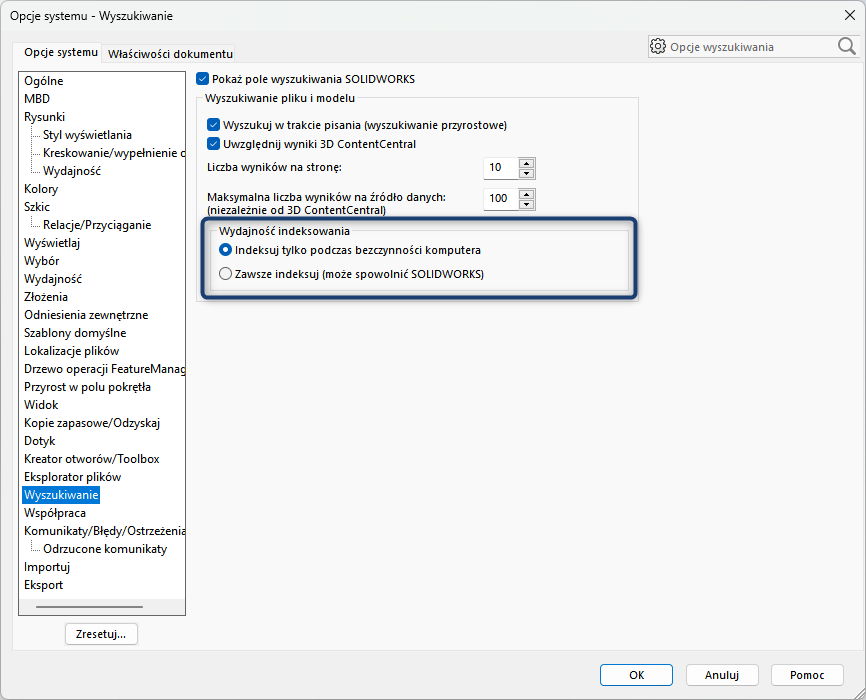 10.1. Wydajność indeksowania – Indeksuj tylko podczas bezczynności komputera